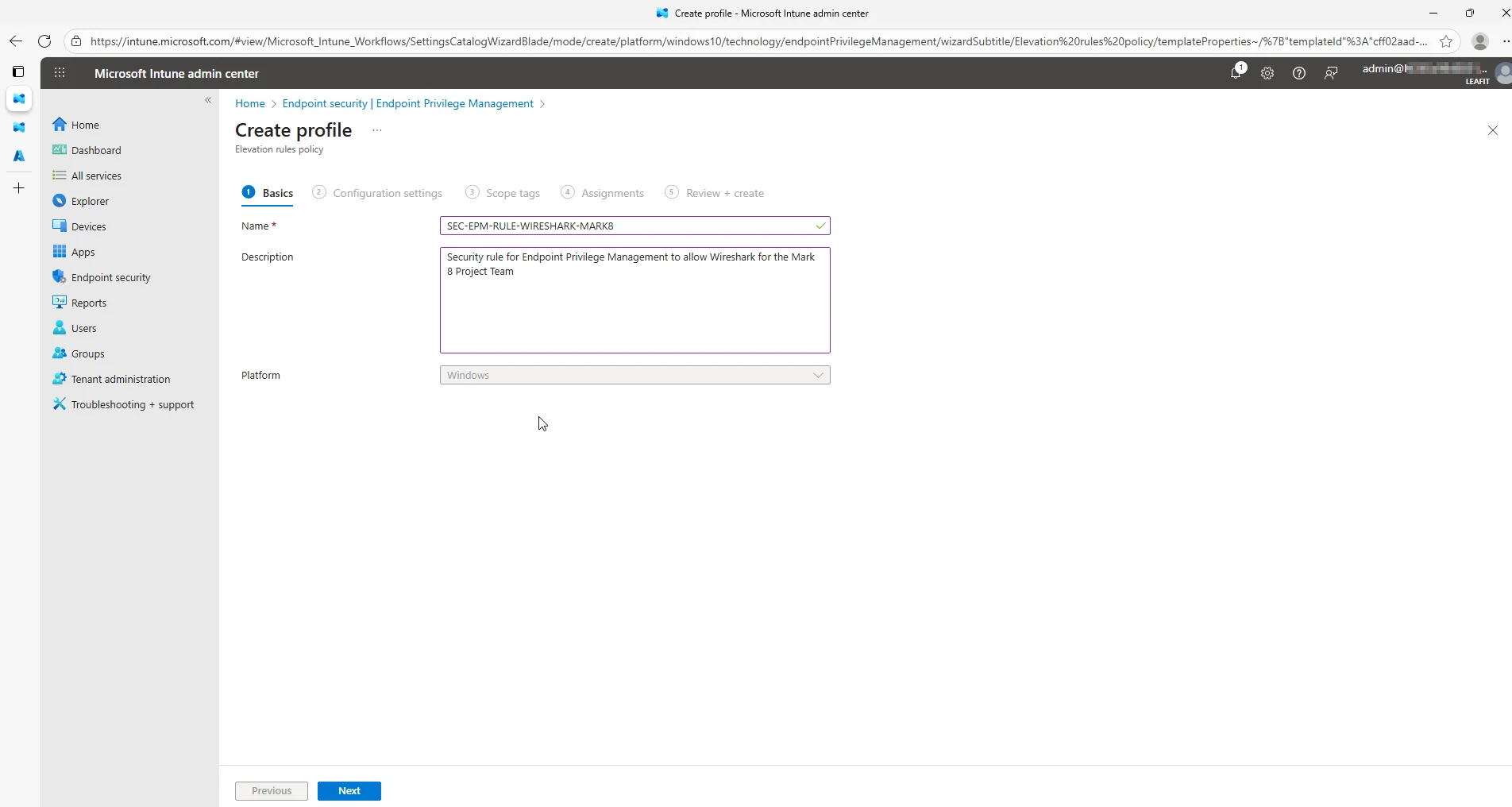 In my demo environment I want to enable all the people for the âMark 8 Project Teamâ to be able to open Wireshark as an elevated user. For this I will create a âElevation Rules Policyâ, I am assuming here that EPM was already configured beforehand.