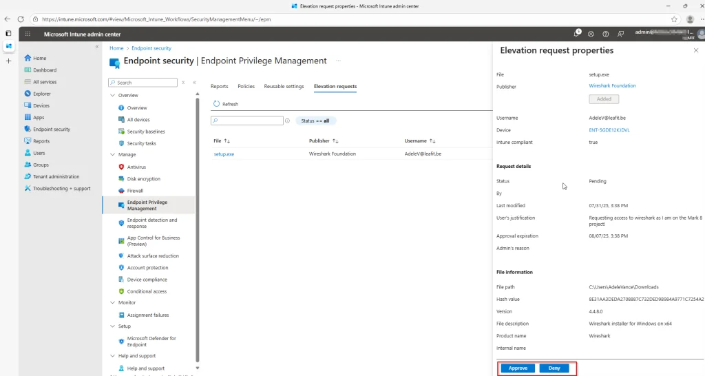 For the Intune administrator the request should come into the âElevation requestsâ-tab almost immediately.