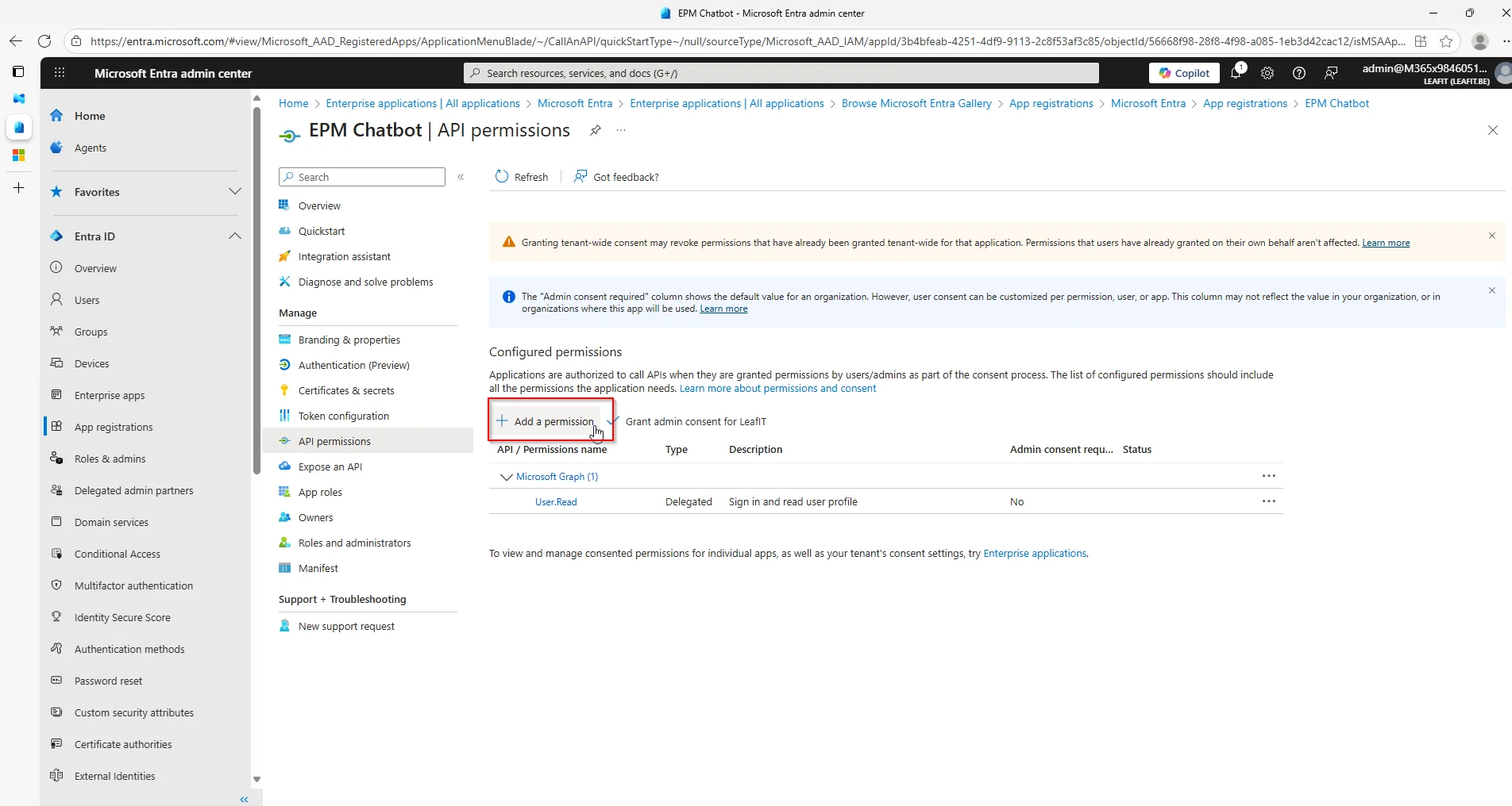 Make sure to also âGrant admin consent for