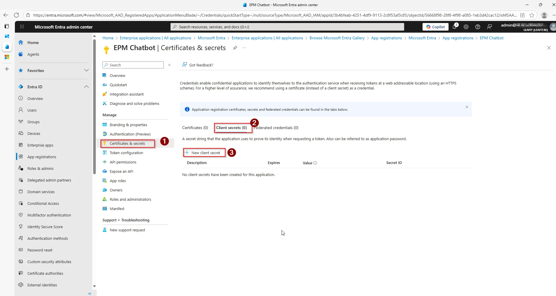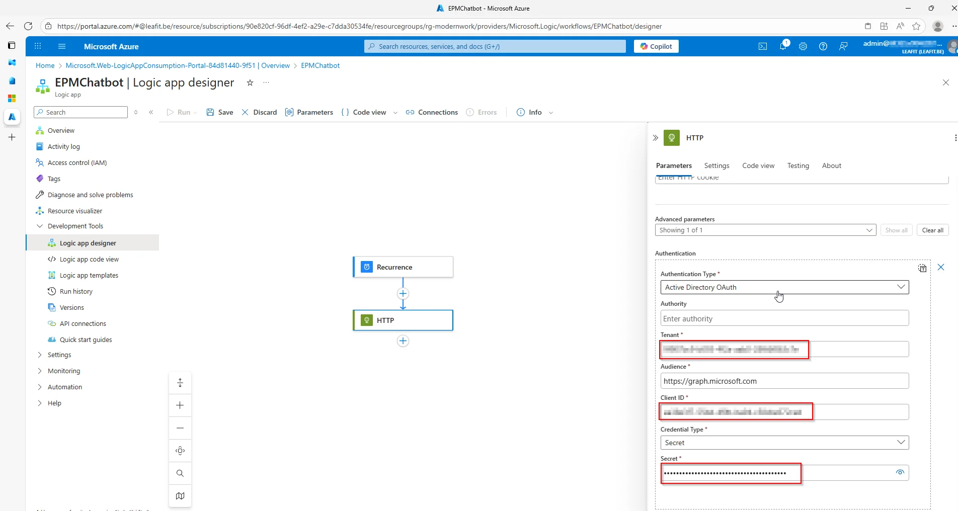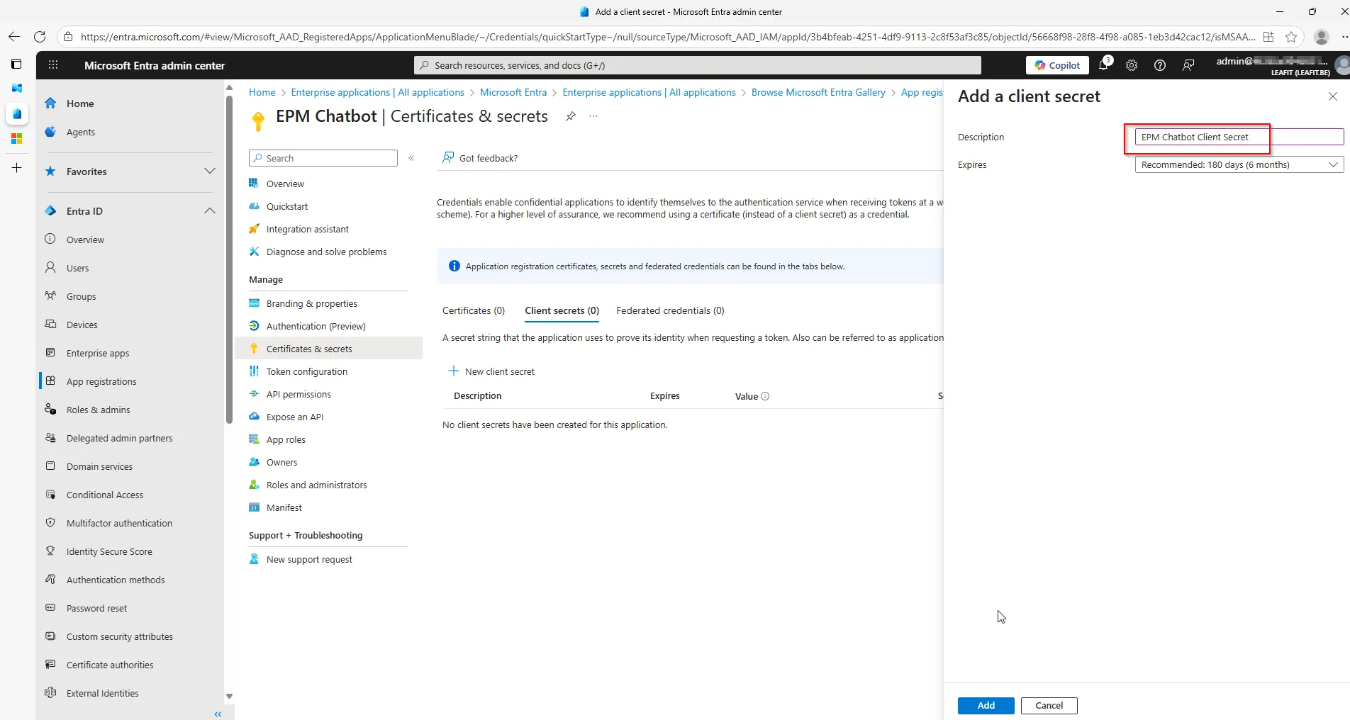 Our final step is to create the Client secret that can be used by our Azure Logic App.