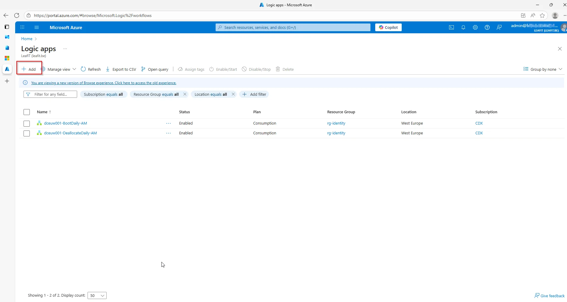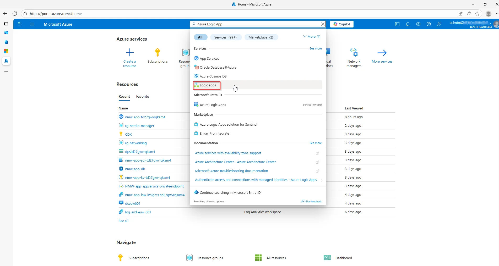 First things first, creating the Logic app. This is done through the Azure Portal.
